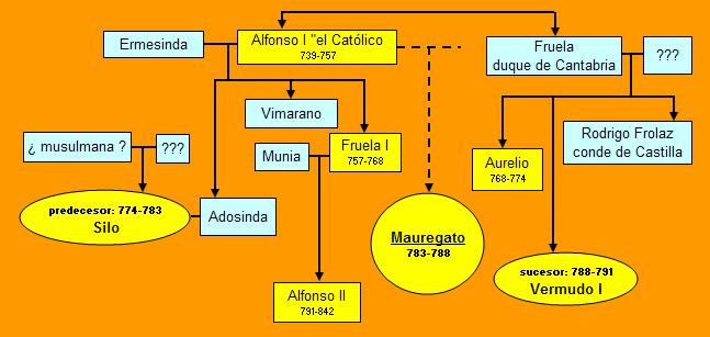 Como en el reino visigodo, la monarquía asturiana era electiva, pero dentro de las familias de los primeros caudillos. Al morir Silo, su viuda Adosinda, de acuerdo con la mayoría de los magnates, quiso nombrar rey a su sobrino Alfonso, hijo de Fruela I, que durante los últimos años había actuado de mayordomo de palacio. Pero el que subió al trono de forma violenta fue Mauregato, hijo bastardo de Alfonso I "el Católico" y de una sierva, probablemente una cautiva musulmana. Adosinda tuvo que entrar en un convento y el futuro Alfonso II se refugió en las Bardulias (Castilla), de donde era su madre.