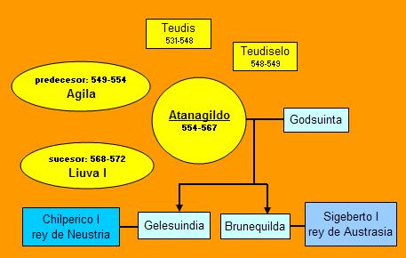 Le excesiva atención concedida a los problemas de la Hispania meridional favoreció la expansión de los suevos, recientemente convertidos al catolicismo, por las zonas limítrofes a los territorios que ocupaban en el noroeste. Sin embargo, el nordeste permaneció en calma gracias a las buenas relaciones con los merovingios, que veían también un enemigo en los bizantinos. Por ello, unieron sus fuerzas siguiendo el sistema de las alianzas matrimoniales: Sigeberto I, rey de Austrasia se casó con Brunequilda y Chilperico I, rey de Neustria con Gelesuindia, hijas de Atanagildo y de Godsuinta.