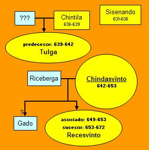 Chindasvinto, noble de setenta y nueve años, consiguió el trono gracias a una sublevación de la nobleza contra el rey Tulga en el año 642. Desde el primer momento de su reinado tuvo que mostrarse enérgico con la levantisca nobleza, ejecutando a doscientos nobles de las familias más distinguidas y quinientos de la baja nobleza.